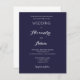Plain white envelopes are included with paper invitations and will come to fit the invitation size you select. If you don’t need the envelopes, you may choose to not receive them by selecting the dropdown below "Envelopes" and choosing "None." If you’d like to have a design on your envelopes, you can browse all of these available envelopes to find the design that complements your Modern Navy Blue Wedding Invitations.