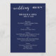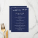 Modern navy blue wedding menu featuring clean typography and a minimal, elegant design. Perfect for contemporary, classic or formal weddings, this stylish menu presents your reception courses with timeless sophistication and refined charm.