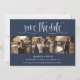 Elegant navy blue wedding 4 photo save the date cards with modern calligraphy. Easily personalize this card with your images and wedding details including a wedding website.