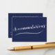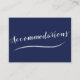 Modern navy blue and white wedding accommodation cards featuring clean typography and a refined, minimal layout. Perfect for contemporary, classic or formal weddings, these elegant cards clearly share guest lodging details with timeless style and polished coordination.