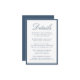 This wedding details card features “Details” in refined navy calligraphy, paired with classic serif typography for your accommodations, reception information, and wedding website. The deep navy border frames the design with a tailored, polished finish that feels both timeless and formal. With its crisp contrast and elegant typography, this card is well-suited for traditional, black-tie, coastal, and evening weddings, offering a sophisticated way to share important guest information.