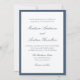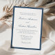 Invite your guests with a look that feels both classic and refined using this navy blue wedding invitation. A rich navy border frames the design, while the couple’s names appear in flowing calligraphy, and the wedding details are arranged below in crisp serif lettering. The contrast of deep blue and white creates a timeless presentation that works beautifully for formal celebrations, estate venues, and elegant evening weddings.