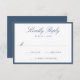 This wedding RSVP card features elegant navy calligraphy script at the top, paired with classic serif lettering and space for your desired wedding response date. A navy border frames the design, creating a refined and timeless look that feels polished without being overly formal. The structured layout offers a sophisticated way for guests to reply, making this RSVP card well-suited for traditional, modern, and classic wedding celebrations. Personalize the wording to create a response card that feels intentional and thoughtfully designed.