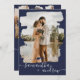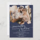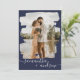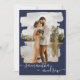 Modern navy brushstroke script 2 photos wedding invitation