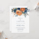 Modern Navy Burnt Orange Florals QR Code Wedding Invitation