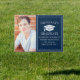 Modern graduation yard sign featuring a stylish navy blue background that can be changed to the color of your choosing. Personalize this custom design with your own photo, name, school name and graduation year.