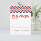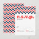 Modern Navy & Coral Chevron & Lovebirds RSVP Card