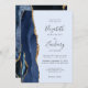 Modern Navy Gold Agate Light Blue Wedding Invitation