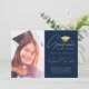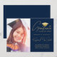 Modern Navy Gold Script Photo College Graduation Announcement