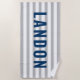 Modern Navy Gray Stripe Monogram Name Beach Towel