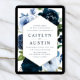 modern navy & light blue flowers wedding invitation
