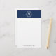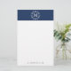 Add style to your stationery collection with beautiful, modern navy monogrammed stationery. The stationery's header features a navy background, decorative frame, and custom monogram. The design's footer features a personalized placeholder that is perfect for your name and contact information.