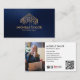 Elegant Modern Navy Professional Real Estate Add Photo Business Card, add your QR Code