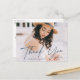 Modern photo graduation thank you postcard featuring the graduate's photo with "thank you" in a handwritten navy calligraphy script overlay. Personalize the front of the graduation thank you postcard by adding the graduate's name and graduation year. The photo thank you postcard reverses to display your return address and custom message.