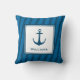 Modern Navy Striped Nautical Last Name Anchor Throw Pillow