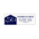 Modern and trendy we've moved address label. Features the words 'We've Moved" written in a modern hand-written script font and san serif font and placed inside a modern navy house shape. Customize with your name and new address.