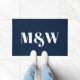 Modern navy white custom couple monogram initials doormat