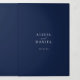 Simple elegant minimal typography trendy navy blue and white all in one trifold wedding invitation template with 2 photos, online rsvp, and details with scanning QR codes to your website featuring a chic trendy calligraphy script and dark navy overlay. ++++++++++++ Easy to personalize with one or two custom photos, your codes, and guest information on both sides! The invitation is suitable for classic formal and contemporary weddings.