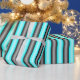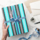 Modern Neon Blue and Black 3D Metal Effect Stripes Wrapping Paper