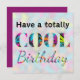 This contemporary birthday card features a vibrant multicolor design, with the message 'Have a totally cool birthday'. The modern and bright colors have a neon look. Ideal for lovers of bold modern style.