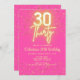 Modern Neon Glow Hot Pink Gold Glitter 30 Birthday Invitation