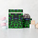 Modern neon green hearts bokeh Christmas tree lights festive gift Wrapping Paper.