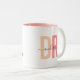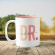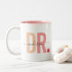 Cute, modern coffee mug saying DR. in modern typography in dusty blush pink tones with your family name in trendy script calligraphy on a two-toned coffee mug. Perfect appreciation gift for a special doctor in your life, a heartfelt thank you, or PhD graduation gift!