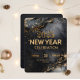 Modern New Year with Black Marble and Gold Swirls Invitation