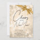 MODERN New Years Eve Gold Champagne Bokeh Gold Bow Invitation