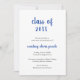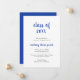 Minimalist graduation announcement card featuring a simple and classic design with "class of year" and the graduate's name in a thick blue script handwriting over a white background. The backside is solid blue. A traditional announcement card with a modern flair for a girl graduate.