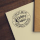 Modern Notary Public self inking stamp. Design features round border, typography script notary public in trendy handwritten lettering and a feather ''pen''. Personalize with your details.