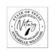 Modern Notary Public self inking stamp. Design features round border, typography script notary in trendy handwritten lettering and a feather ''pen''. Personalize with your details.