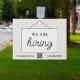 Modern now hiring sign is perfect for boutiques, salons and restaurants.
