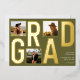 Celebrate your graduation with this modern photo typography graduation foil invitation. This sleek design features luxurious foil typography with the word "GRAD" prominently displayed. The invitation allows you to showcase three of your favorite photos on the front, creating a unique and personalized keepsake. Customize with your name, school, and graduation year on the back to share your achievement with friends and family. Perfect for high school or college graduates, this invitation beautifully captures your milestone moment with a stylish olive green backdrop.