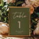 A simple and elegant olive green table number card. Customize with your names and wedding date on the bottom.