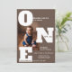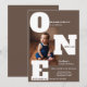 Modern ONE first birthday photo mocha brown Invitation