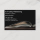 Book publishing and Author business card template with an open book graphic in the background and simple classic business card layout you can customize online. Presented on high quality UV coated business card stock.