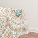 This modern mandala design features a lively blend of earthy orange, sage green, and deep teal, arranged in concentric layers of rhythmic shapes. The center radiates outward with petal-like bursts that transition into playful loops, dots, and geometric forms, giving the composition both structure and flow. The alternating warm and cool tones create a sense of balance, while the repeating circular motifs bring movement and energy. Set against a crisp white background, the colors feel bright yet grounded, making the overall pattern both vibrant and soothing. A perfect choice for anyone drawn to geometric detail, organic symmetry, and bold, colorful expression.