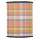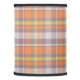 This plaid lamp shade has orange, yellow, ivory and periwinkle colors. It adds an eclectic modern yet classic vibe to bedroom or living room decor.