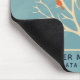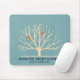 A mousepad personalized with your name and title. Designed with a muted green background layered over top is a light yellow tree with 2 orange bird silhouettes sitting on the branches.