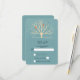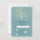RSVP card with a muted green background layered over top is a light yellow tree with 2 orange bird silhouettes sitting on the branches.