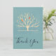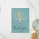 A flat thank you card with a message on the back you can personalize. Designed with a muted green background layered over top is a light yellow tree with 2 orange bird silhouettes sitting on the branches.
