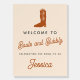 A modern Boho Cowgirl Bridal Shower welcome foam board for "boots and bubbly" with a retro inspired script font in burnt orange and cream white beige. All colors of this design can be changed - simply access the design tool to make the changes you'd like. This is a double-sided board with a welcome message on the front and a Thank You on the back. Simply turn the sign around before your guests leave the event.