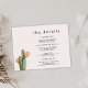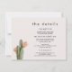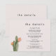 Modern style cactus themed wedding details card featuring a pale orange floral cactus on a dusty gray pink background.