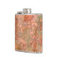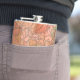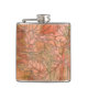 Modern Orange Floral Print on Stripped Background Hip Flask