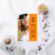 Our modern orange foil graduation announcement card features an eye-catching class year layout. Add photo, name, and school of your graduate.