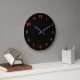 Modern Orange red numbers on black Large Clock