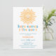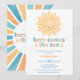 Sweet and simple sun themed baby boy's baby shower invitation featuring a large sun and three colored text heading. This boy's modern baby shower invitation is ideal for someone that's looking for a simple modern invitation design.