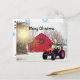 Modern Orange Tractor in Barnyard Christmas Postcard