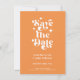 Modern Retro Typography over a soft orange background and a Photo Wedding Announcement Flat Card. With a unique typography "save the date" on the front, with names and date in a simple and minimal design on the back, add your wedding website for event details. The couples photo is a full-frame photo. A unique and affordable Wedding Save the Date for couples on a budget. Choose prints and/or a digital announcement download.